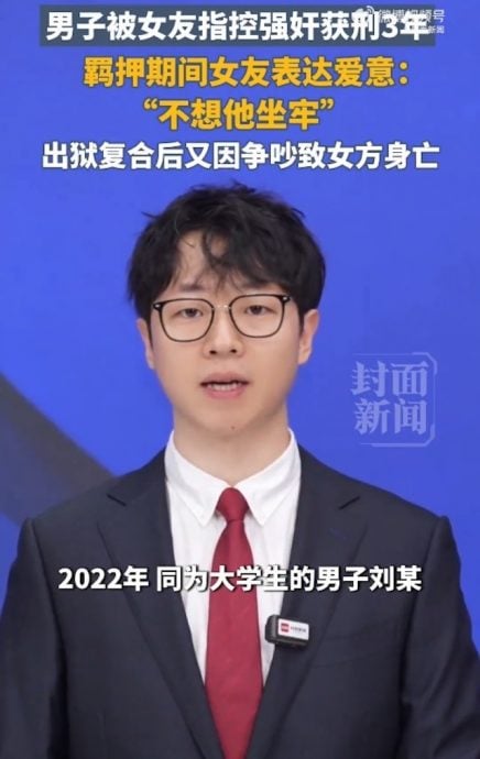 这段关系的源头可追溯至2022年7月。当时仍是大学生的两人于暑假期间同住,晶晶向警方报案,指控刘某在其生理期期间,违背其意愿强行发生性关系。案件随后进入司法程序。