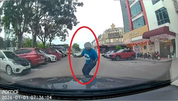 柔佛新山茂奥斯汀区(1日)早上7时36分,一名男子站在路旁,突然奔向一辆行驶中的轿车,企图制造假车祸向女司机勒索,却意外遭警方惊问“是不是想自杀?”