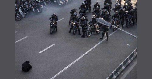 社交媒体上流传多段现场画面,可见示威者在马路中央席地而坐,以肉身阻挡军警推进,面对武装力量毫不退缩,画面震撼人心,也引发外界对其勇气的热议。