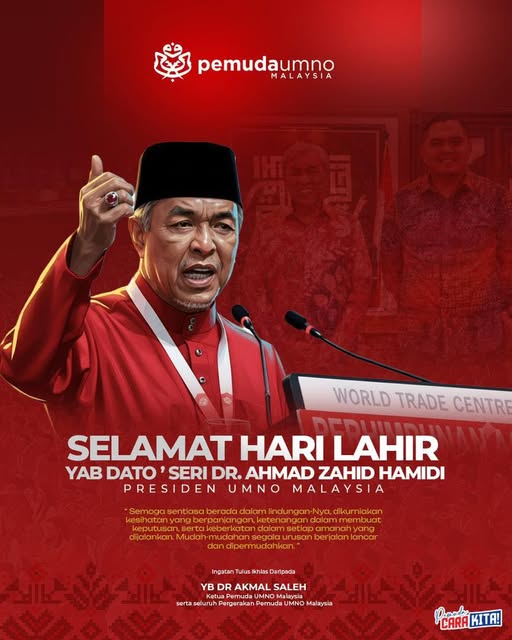 巫青团团长拿督阿克马透过社交媒体,向副首相兼巫统主席拿督斯里阿末扎希送上生日祝福,并祈愿对方持续获得真主的眷顾,继续为宗教、族群与国家作出贡献。