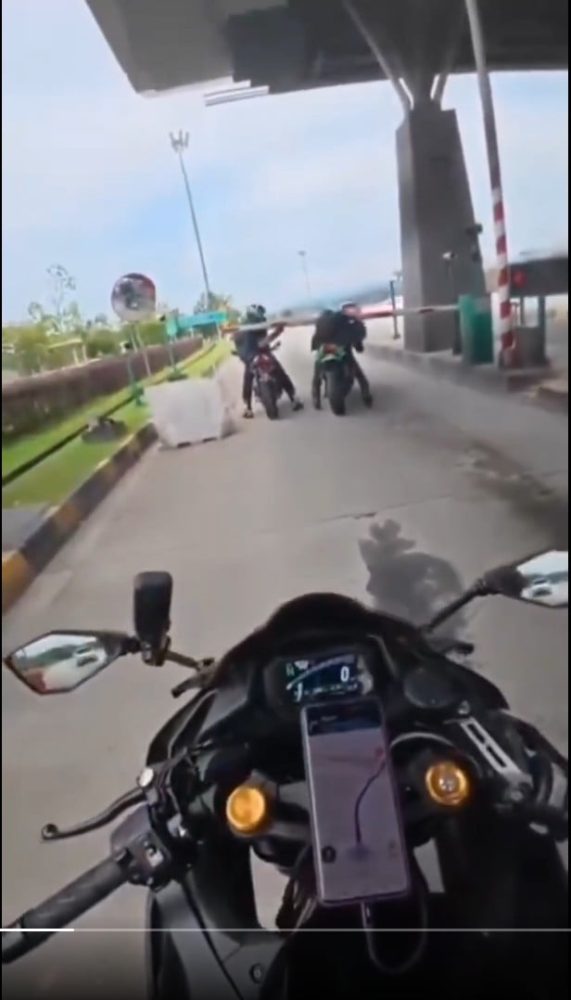 根据网络流传的视频,事件发生时,共有四名摩托车骑士,其中包括拍摄者,他们的车牌显示疑似来自新加坡。当他们行驶至收费站时,拍摄者发现他们进入了原本只供轿车使用的车道。拍摄者随即开始大笑,并让在前方的同伴抬起收费站栏杆。