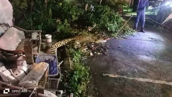 成邦江巴刹公厕附近发生惊险一幕,一只鳄鱼出现在公厕外的鸡笼旁,引起民众恐慌。