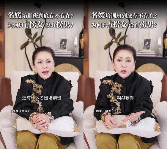 香港影视大亨向华强的妻子陈岚(向太)近年频繁在社交媒体分享人生见解,近日一支以“捞女”为主题的视频,再次引发热议。向太在影片中不仅力挺郭富城的妻子方媛,也直言“名媛培训班”根本不存在。