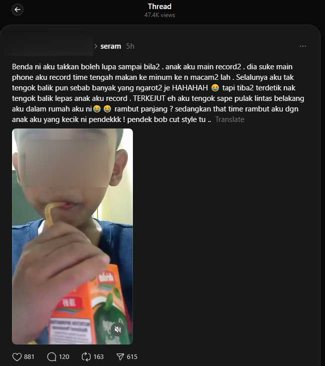 这名网民@_littlemiss.syaa表示,其儿子经常用手机记录生活点滴,拍下自己喝水、吃饭等日常行为,每次回看视频内容都让她忍俊不禁。然而,她称此事件发生在2022年,当时儿子在老家自拍喝饮料时,她在回看视频时发现电视屏幕上出现一个不明物体快速掠过。
