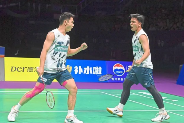 在马来西亚羽球公开赛男双次圈赛事中,大马男双“飞汀组合”迎战英格兰组合Ben Lane/Sean Vendy。双方此前唯一一次交锋由英格兰组合胜出,本场再度对垒,飞汀组合以13比21、17比21告负,止步次圈。