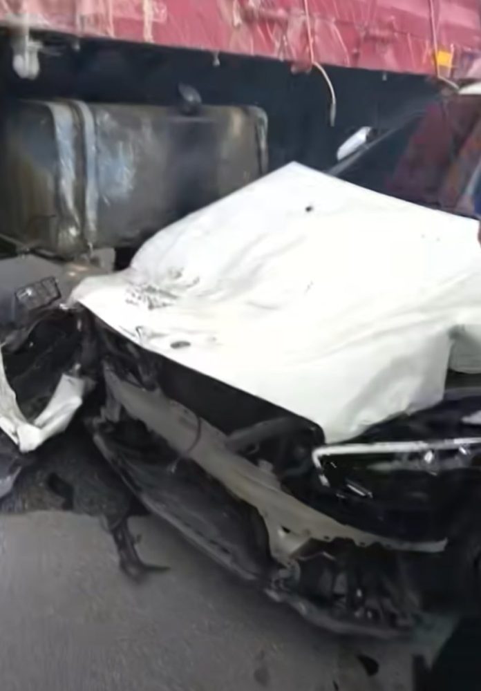 从视频内容观察,至少有五辆轿车无辜受牵连,车头或车尾不同程度受损,事故发生后吸引不少民众围观,现场一度相当混乱。