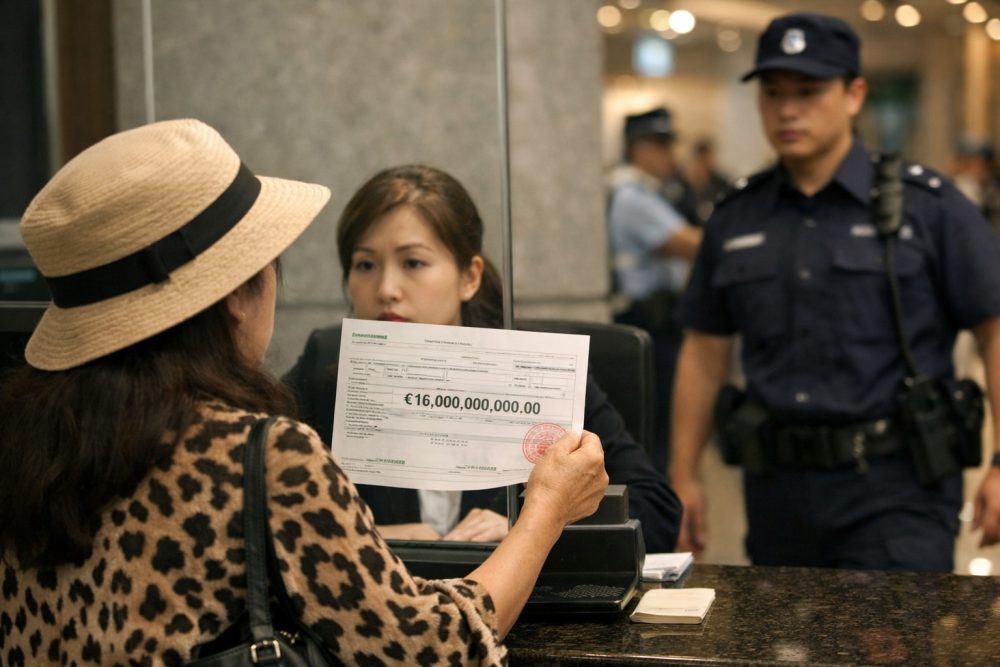 一名来自中国、声称从事商业活动的女子,日前手持一张金额高达160亿欧元(约758亿令吉)的汇款文件,前往香港金钟太古广场一间银行要求提款,因数额异常引起银行职员怀疑,随即报警处理。