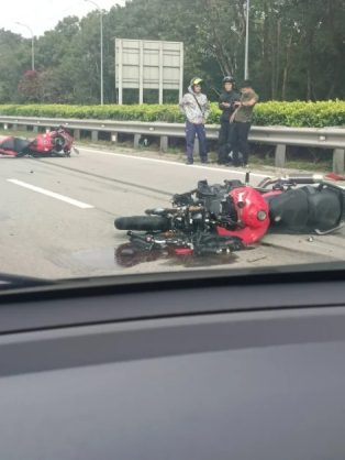马新第二通道昨日下午发生严重交通事故,一名29岁摩哆骑士头部重创,当场不治,另一名摩哆骑士仅轻微擦伤。