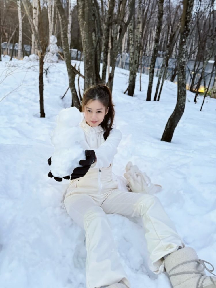 照片中,岑丽香身处一片白茫茫的雪地中,身穿同色系滑雪服几乎融入背景。她扎起高马尾,笑容甜美,双手捧起一个疑似小雪人的雪块,皮肤白皙紧致、吹弹可破,即便近看也毫无瑕疵。画面中,她的美貌与雪景相映成趣,赏心悦目。