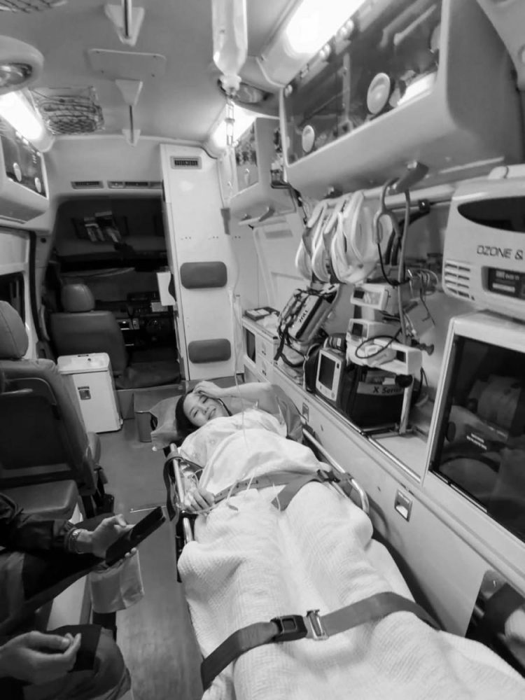 JingEn 回忆,当天正值自己生日的前一天,半夜一点多因尿急上厕所,发现马桶中鲜血直流,还带血块,腹部虽无疼痛却沉重不适。她立刻打电话给丈夫求助,并被紧急送往医院。原本计划在私人医院待产,但因孕周不足 31 周,医院建议转至设备更完善的政府医院,以防早产风险。