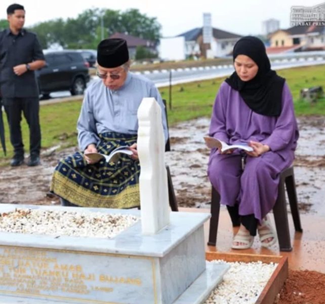 爱,并未因阴阳相隔而褪色。砂拉越总理拿督巴丁宜阿邦佐哈里昨日在女儿达央诺吉涵陪同下,一如往常前往三马连伊斯兰墓园,探望已故砂拉越总理夫人拿督阿玛祖玛安妮。