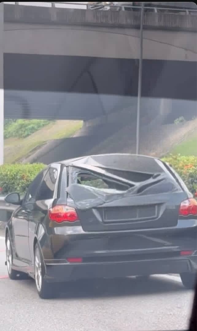 昨晚约8时,在南巴生谷大道(SKVE)的加影-蒲种路段,一辆罗厘的后轮胎在高架天桥上突然爆炸脱落,砸中下方行驶的宝腾Satria Neo轿车。幸运的是,事故中双方司机均未受伤。