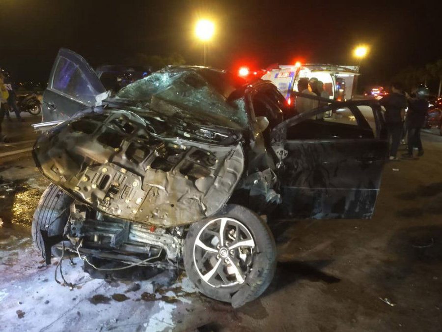 事故于昨晚约10时30分发生。根据现场流传的画面显示,涉事的第二国产车Aruz在驶近南北大道双溪赖收费站时,车辆行驶路线突然从左侧车道高速偏移至右侧,随后猛烈撞向中央分界堤并翻覆,车体严重变形,两人一度被困车内。