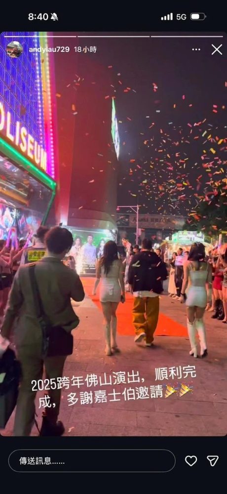刘天龙在社交平台分享演出盛况,他与两位啤酒女郎一同走上红地毯,引发网友热议,不少人留言:“好威风!”、“TVB绿叶在中国都变巨星了!”