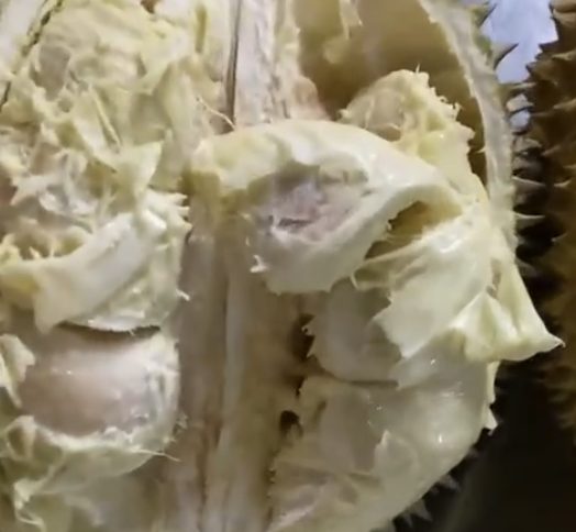 一名女子以231令吉购买5粒猫山王榴梿,原本期待能品尝到金黄色果肉,没想到剖开后却发现果肉颜色偏淡,部分甚至出现疑似发霉迹象,当场察觉情况不对,怀疑自己遭人欺骗。