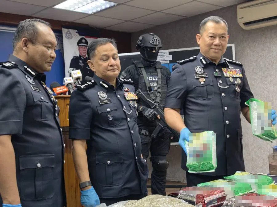 拉哈曼在柔佛警察总部新闻发布会上表示,行动中起获大量毒品,包括: