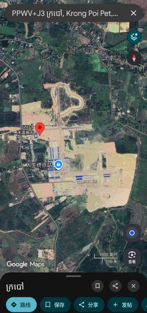 胡杰良透露,该园区位于柬埔寨乌拜川(Ou Bei Choan),靠近泰国西北部沙缴府(Sa Kaeo),距离泰国边界仅约1公里。表面上,这里看似普通发展区,但实际放大地图或亲临现场,情况完全不同。