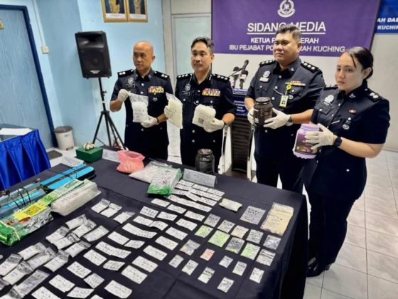 古晋警方于本月9日(周四)下午约3时40分至晚上7时50分,在古晋一带展开情报行动,成功逮捕两名本地男子,并缴获多种毒品,总值约32万8173令吉50仙。