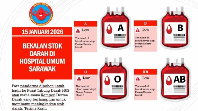 血库呼吁,已达到捐血间隔时间的民众,可前往砂中央医院血库,或参与任何临近的流动捐血活动,为库存补充血液,以满足患者的紧急需求。