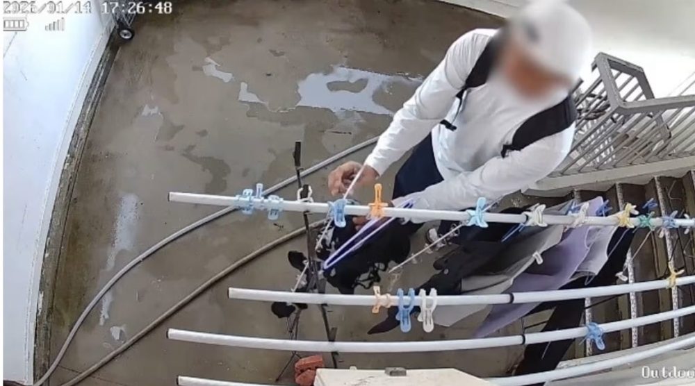 新加坡一段偷拍视频近日在网上流传,显示一名年轻男子在义顺一带的组屋外,疑似偷走居民晾晒的女性内裤,引起关注。受害者指出,这已是同一住家第二次发生类似情况,已对个人安全产生不安,并第一时间报警处理。