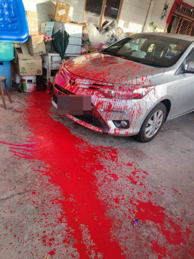 “我的车子、大门、地板,甚至屋前的花草都被泼上红漆,对方还留下字条威胁,说下一步要纵火烧屋。”