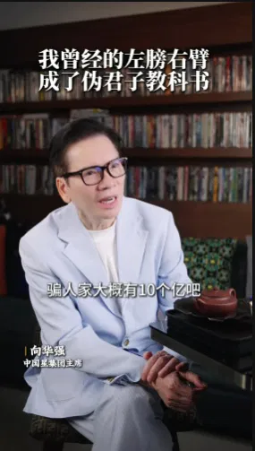 向华强日前在抖音上传影片,以“曾经我的左膀右臂,成了伪君子的教科书”为题,首度公开这段不堪回首的经历。他透露,自己最信任的一名助手在身边潜伏长达5年,期间竟借用他的名义在外诈骗,“他用我的名字,在外面骗了大概10个亿。”