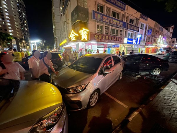 今晚约10时15分,槟城大路一带发生一起惊险连环车祸,一名华裔青年驾驶本田轿车疑似失控,先撞上路旁大树,再撞毁水果摊,随后越过反方向车道,连环撞及3辆停泊车辆。一名女子险些被撞,场面令人目瞪口呆,所幸无人重伤。