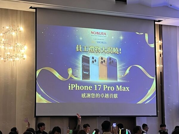 年终尾牙季登场,各企业纷纷端出奖品炒热气氛。在台湾,除了科技业持续吸睛,外资投信业者野村投信也在尾牙活动中掀起话题,现场宣布为全体员工送出一人一支 iPhone 17 Pro Max,不设抽奖机制、人人有份,豪气作风引发热议。