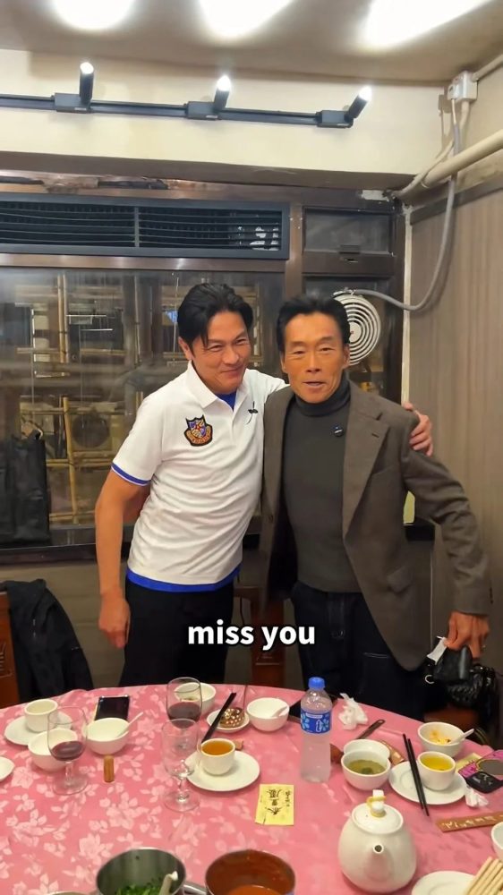 影片中,两人一见面便显得格外兴奋,关礼杰更主动上前紧抱郑浩南,笑喊一句:“Miss you!”兄弟情溢于言表。席间,两人一边小酌白酒一边聊天,笑声不断。郑浩南更贴心替关礼杰夹菜,互动自然又亲昵,尽显铁汉柔情。关礼杰当晚亦携同太太同行,夫妻间不时流露甜蜜默契,画面相当温馨。