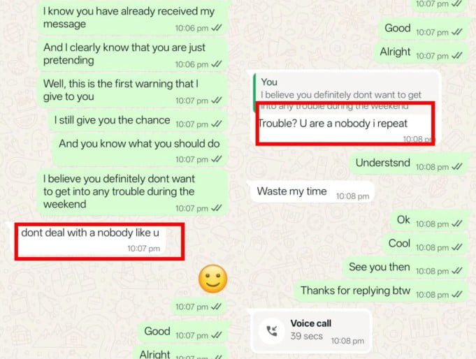 蔡佩颖说:“我多次通过WhatsApp联系对方都未获回应,打电话更是接通就挂断,后来改用父亲的手机才接听,并承诺一周内付款,但最终仍杳无音信。”