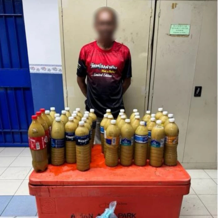 根据《诗华日报》报道警方表示,肃毒组刑警于本月20日晚7时55分突袭嫌犯住所,并当场逮捕他。随后,警方查获38瓶已加工的哥冬水,以及一个200公升的橙色木桶和5.2公斤哥冬干叶,总市值约2,126令吉。