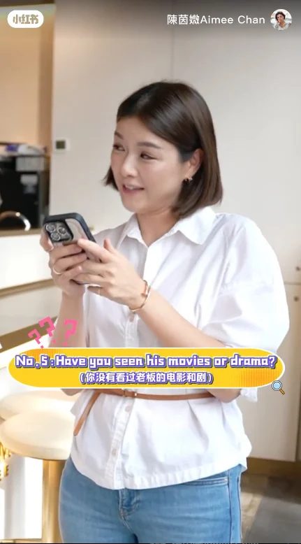 最令人发噱的一幕发生在其后的“粉丝忠诚度测试”中。陈茵媺询问员工是否有观看陈豪的影视作品,一名员工信心满满地表示“从小看到大”。然而,当陈茵媺要求对方列举出陈豪的3部代表作时,该名员工疑似因过度紧张导致大脑“短路”,支支吾吾半天吐不出作品名,最后竟只喊出一句经典表情包台词“帮朕Check下”,瞬间让现场气氛变得既尴尬又搞笑。、