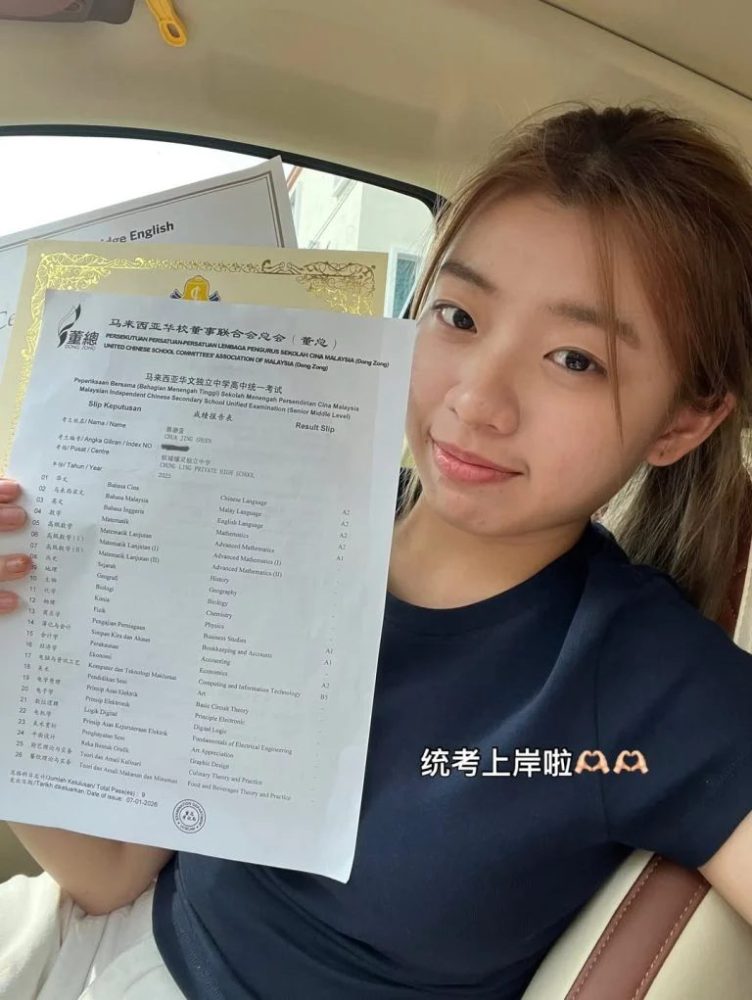 面对弱项,她没有退缩,而是选择最踏实的“笨方法”——拼命刷历届试卷(Past Year Paper)。最终,她在统考中将数学成绩拉升至80分以上,实现了惊人的逆转。此外,她对国语考获A2感到惊喜,笑称:“虽然A1不多,但只要达到目标,我就满足了。”
