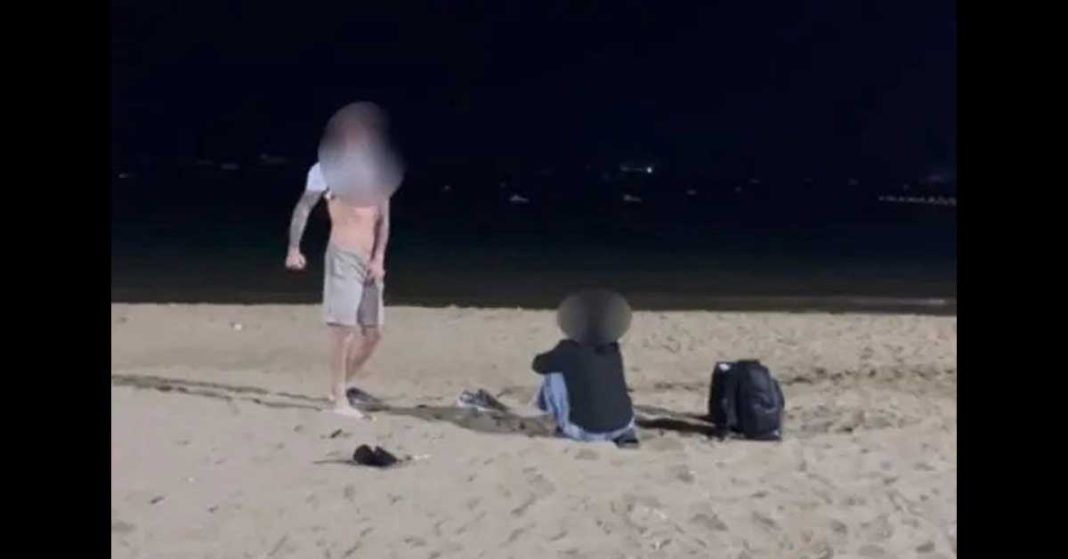 根据当地媒体报导,芭堤雅警察局于凌晨4时19分接获投报,指有人在海滩上做出不雅举动。警方随即赶往现场,发现一名身穿白色上衣及短裤的外籍男子,以及一名身穿黑色服装的泰国籍女子,两人当时躺卧在沙滩上。警方现身后,两人立即分开并试图离开现场,但被当场拦下。