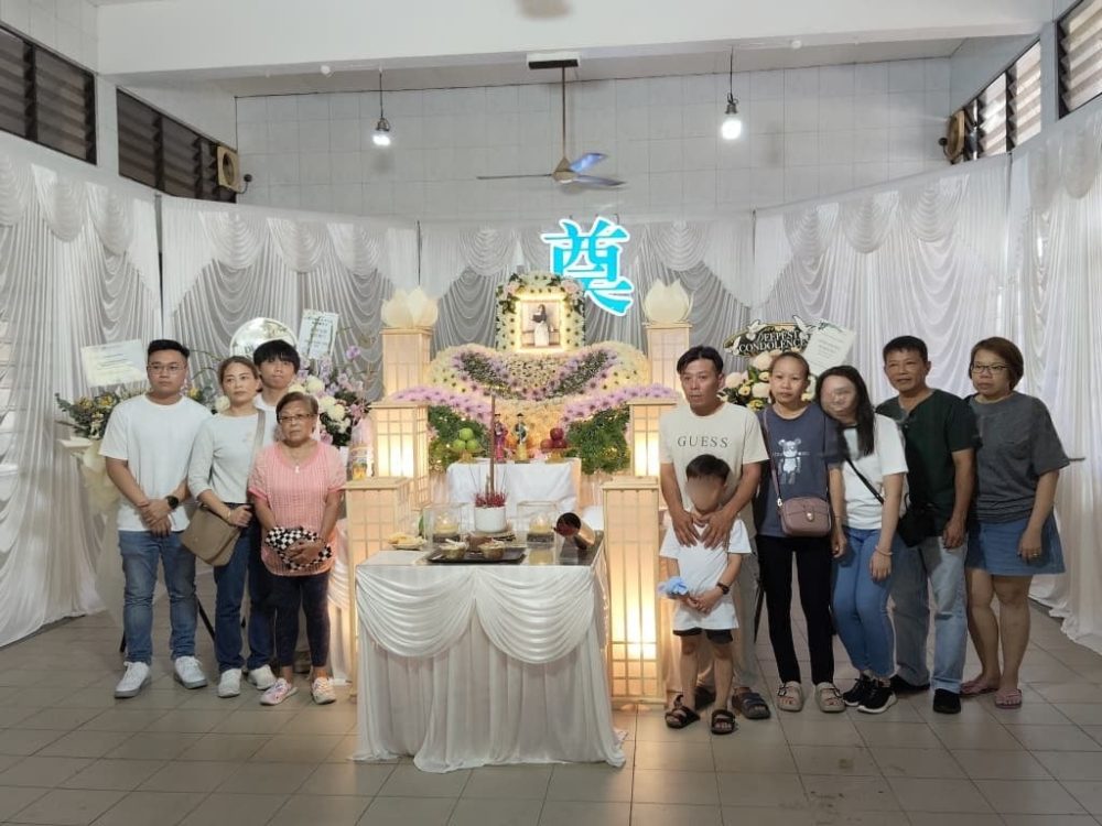 在出殡仪式开始前,亲友们陆续前往灵堂,与陈慧珊合影留念,作最后的道别。死者父亲陈庆文、母亲以及年仅8岁的弟弟,全程陪伴在侧。