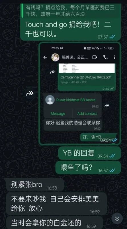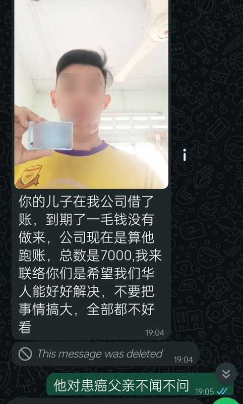 张善深表示,疑似大耳窿的非法放贷者指曾伟晟欠下约7000令吉债务,并要求身患重病的父亲代为偿还,否则将采取极端手段。这类言语威胁已对曾庆福的身心安全造成严重影响。