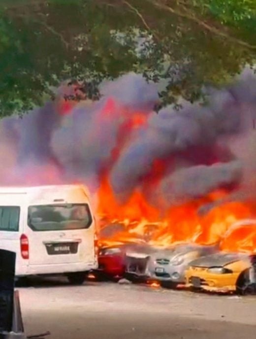 淡杯美雅花园发生一起丛林火灾,火势迅速蔓延,难以控制,熊熊烈焰更波及停放在附近的18辆车子,造成不同程度的损毁。