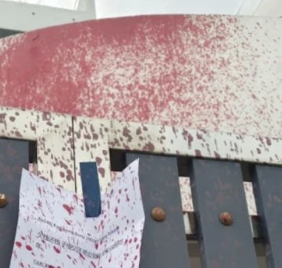 屋主母亲林秀珍透露,家中的女佣是在上午11时许准备进行日常打扫时,惊见住家大铁门遭人泼洒大量红漆,颜色触目惊心。经进一步检查,追债者还在门上贴了一张写有“欠钱不还”及留下新加坡注册电话号码的告示。