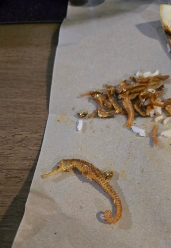 一名网民日前在享用椰浆饭时,意外发现配菜中混入了一只完整的炸海马,瞬间在社交媒体引发轰动,网民纷纷戏称这是“贵族级”的早餐。