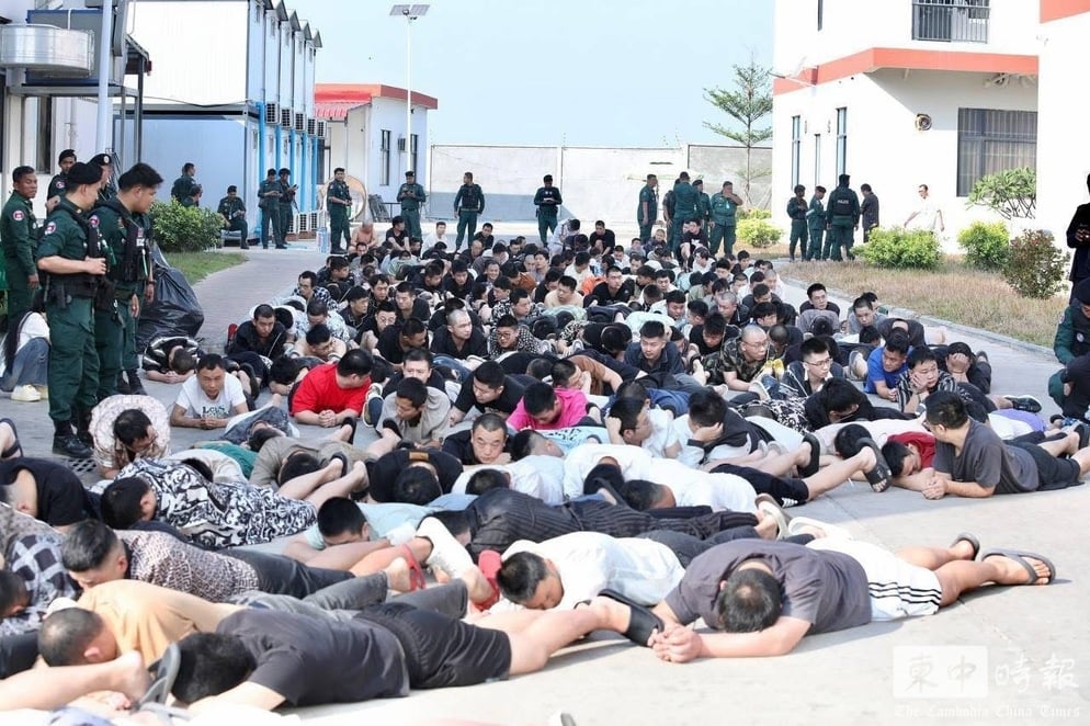 Video footage from yesterday’s massive raid in Bavet. Police deployed 700 officers and arrested 2,044 foreign nationals at the A7 Global Resort compound. Breakdown: 1,792 Chinese, 177 Vietnamese, 179 Myanmar, 36 Indian, 30 Nepali, 5 Taiwanese, 2 Lao, 1 Malaysian, 1 Mexican. https://t.co/1Kw42fPKA5 pic.twitter.com/kBi3XppiTg