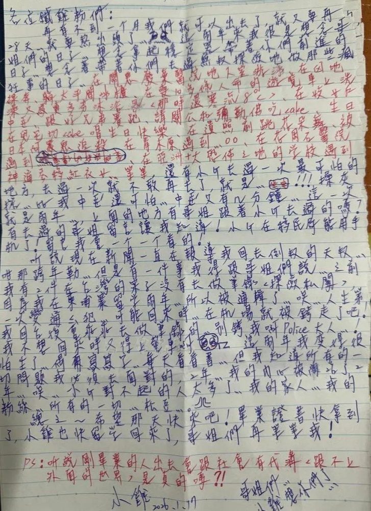 他在昨日(1日)公开亲笔信透露,其2年刑期仅剩最后28天,目前正满怀期待“留学归国”。然而,由于他此前在国内涉及两宗私闯民宅探险案且未到案说明,目前已沦为通缉犯。他自嘲称,人生首次背负通缉令,恐怕一踏入台湾机场就会被戴上手铐。