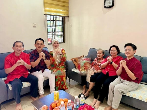 身为高渊国会议员的法丽娜,昨午特别通知吴俊益将亲赴府上给其母亲拜年。吴俊益透露,母亲得知后表现得非常重视与欣喜。母亲特别交代家人准备好穆斯林可享用的罐装饮料及年柑。今早老人家早早起床冲凉打扮,换上喜气新衣并包好红包,在家人陪同下迎接部长莅临。