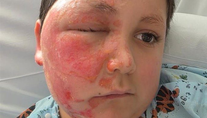 事发当时,母亲惠特妮(Whitney Grubb)正忙着为孩子准备上学,却突然听到厨房传出令人毛骨悚然的尖叫声。她赶到现场发现,儿子心爱的凝胶玩具“NeeDoh Cube”因受热压力过大炸裂,滚烫且黏稠的凝胶瞬间覆盖了迦勒的脸部、双手及耳后,导致他双眼红肿至无法睁开。