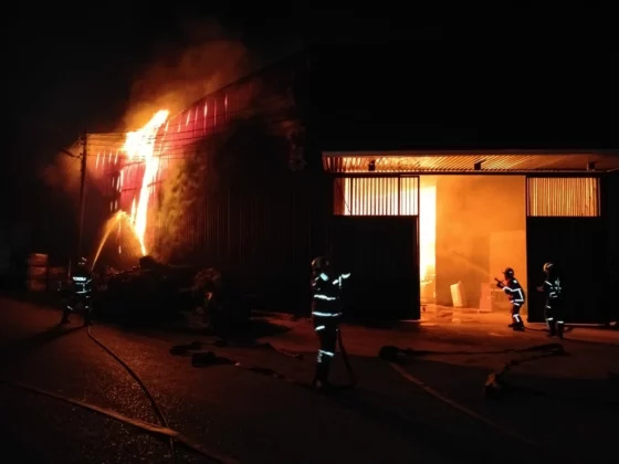 深夜的诗巫苏功路惊传骇人火警,一家木器装修工厂在昨晚将近11时突然起火,熊熊烈火瞬间吞噬了整座建筑,受损程度估算高达八成。由于木制家具与装修材料皆属易燃品,火势蔓延速度惊人,导致现场红光蔽天,数公里外清晰可见。这种情况反映出传统工业区在面对突发火灾时,由于堆积大量易燃原材料,往往会在极短时间内陷入失控局面。