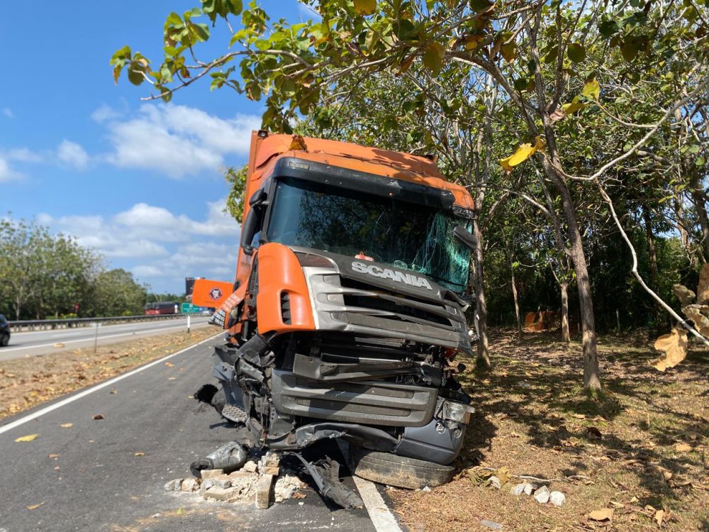 巨大的撞击力导致前方罗里失控翻覆在路旁,车斗上的工业用品散落满地,现场一片狼藉。不幸的是,驾驶该罗里的44岁男司机因车头严重变形而被紧紧夹在驾驶座内,身受重伤。医护人员赶抵现场检查后,证实该名司机因内伤过重,当场气绝身亡。