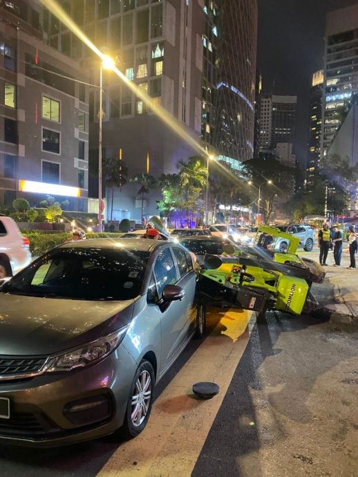 这起恐怖意外是于昨晚约10时30分,发生在靠近丰隆银行大厦的路段。事故不仅夺走一条人命,倾覆的曲臂车还波及并压中路过的两辆轿车。