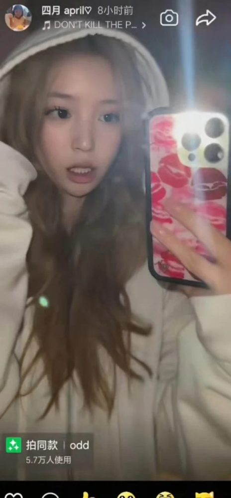 有网民在社交平台上转载了小四月在Instagram限时动态分享的短片。画面中的少女早已褪去稚气,留着一头染成金棕色的长发,散发出成熟自信的少女气息,甚至带着几分叛逆的时尚感。小四月对着镜头随音乐轻唱,举手投足间展现出极强的镜头感。