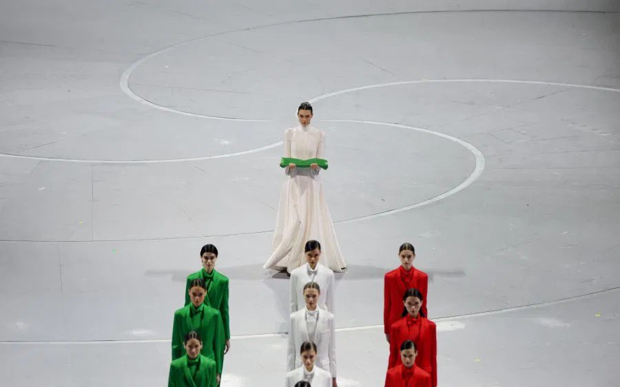 在这场充满意式浪漫与时尚元素的典礼中,27岁的伽里蒂身穿由已故时尚教父乔治亚曼尼(Giorgio Armani)操刀的白色高定礼服,在红、白、绿三色仪仗队的簇拥下压轴登场。她步伐从容且优雅,在众人的注视下亲手将国旗护送至仪仗队面前。那一刻,她仿佛不仅是一名模特儿,更是代表意大利时尚力量的文化符号,完美诠释了顶尖名模的专业功底。
