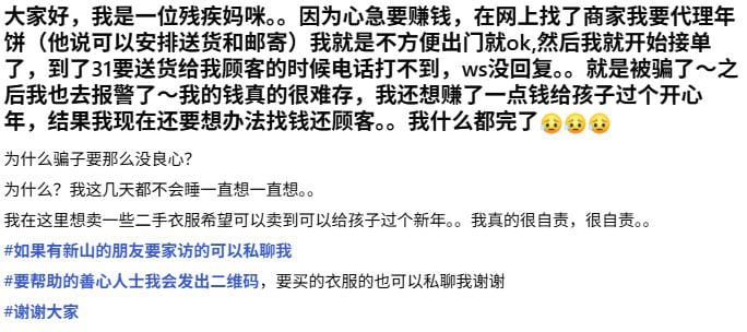在农历新年这个本该万家团圆、充满希望的时节,士姑来皇后花园的一座组屋里,却上演着一幕令人心碎的骗局。41岁的华裔残疾妇女翁春秀,原本为了给两名年幼的女儿添置一套新年衣,自强不息地想代理年饼赚取微薄外快,谁知不仅没赚到钱,反而被冷血骗子卷走了近600令吉的血汗钱。这份被网友称为“连残疾人的救命钱都骗”的行为,引发了大马华社的集体愤慨。
