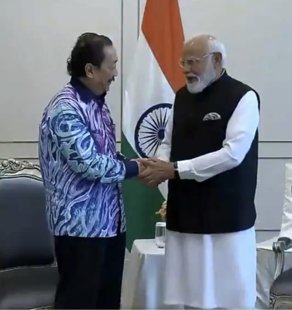 #WATCH | Malaysia: Prime Minister Narendra Modi meets Chairman of Berjaya Corporation Berhad, Vincent Tan Chee Yioun in Kuala Lumpur.